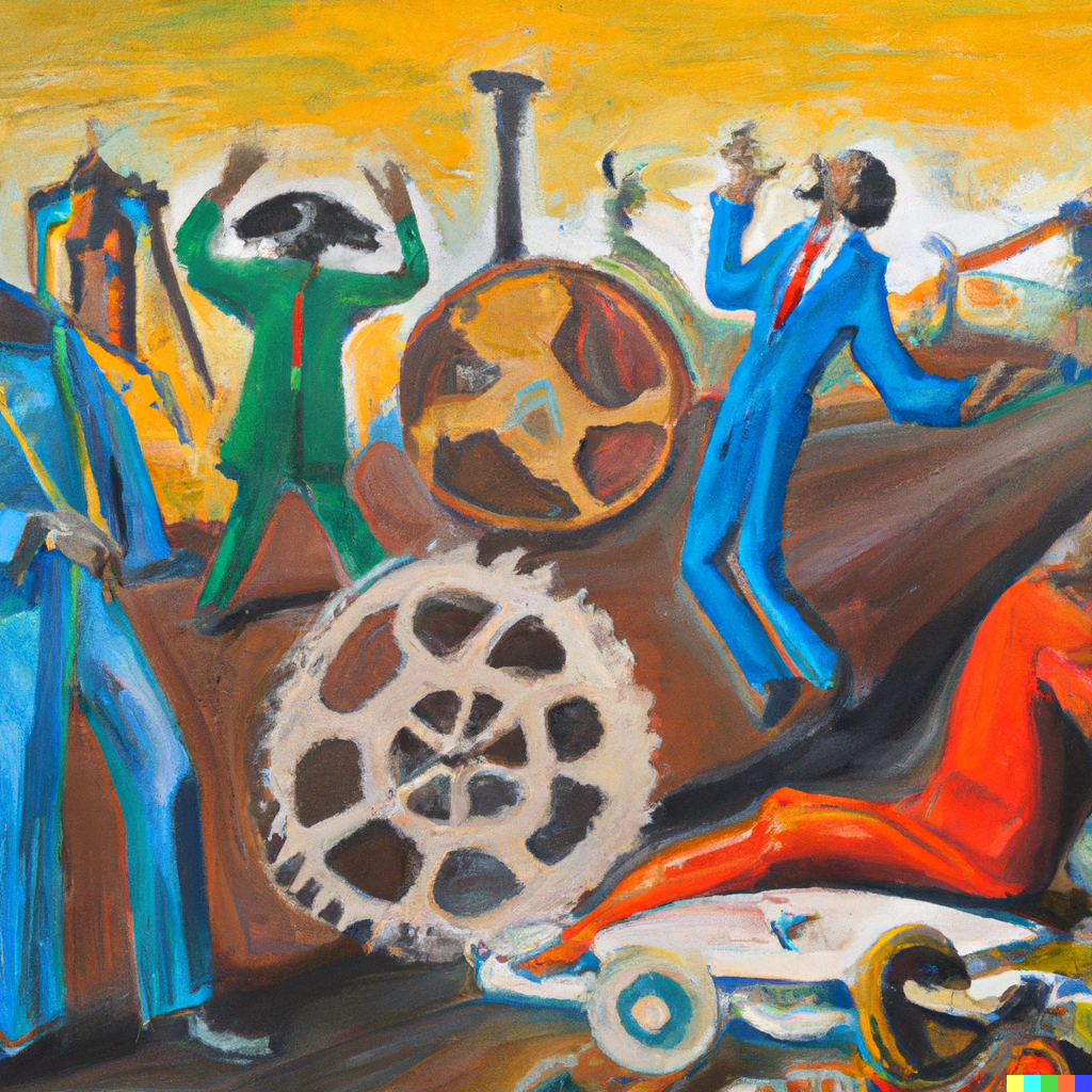 Author's note: Open AI DALL·E is non-violent to its fullest extent. So much in fact that for many things you'll receive a warning rather than a set of images. Maybe one day we'll be able to see how violent the wheels of progress really are.